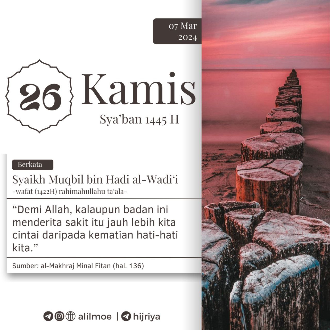 DIANTARA SEBAB KESEMBUHAN IALAH KHUSYUK DALAM BERIBADAH Al Imam Ibnul Qayyim -Muhammad bin Abu Bakar, 751H- rahimahullahu ta’ala berkata, ذكر […]
