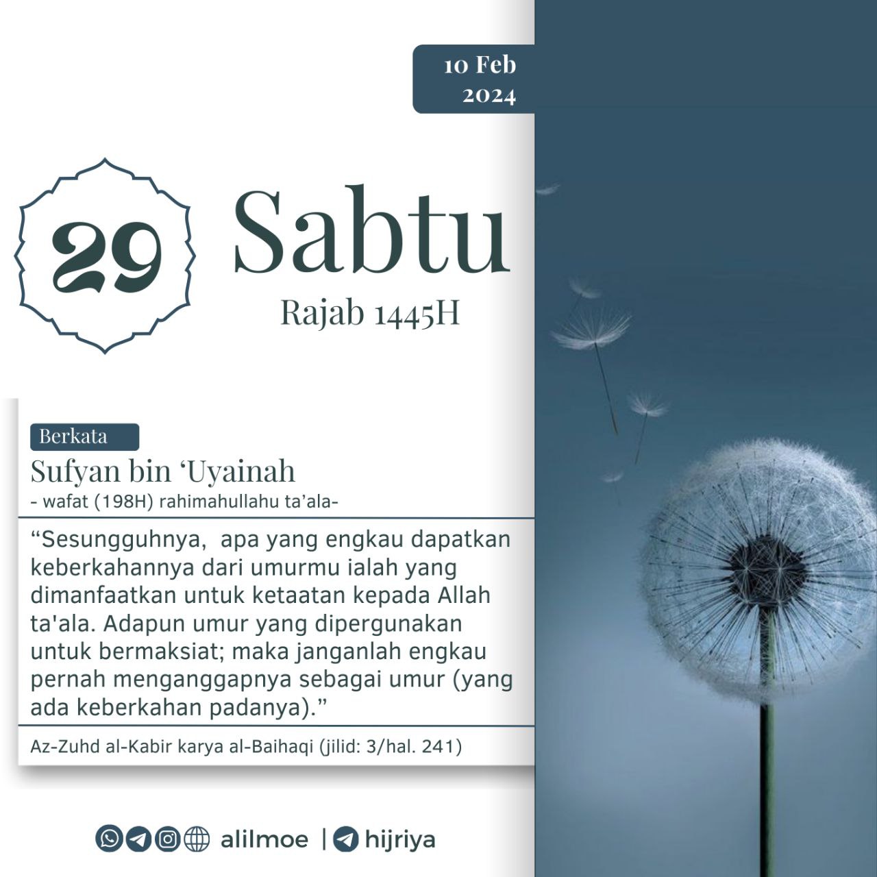 UMUR YANG DIBERKAHI IALAH BILA DIGUNAKAN UNTUK KETAKWAAN KEPADA ALLAH Sufyan bin ‘Uyainah (198H) rahimahullahu ta’ala berkata, إنّ لك من […]