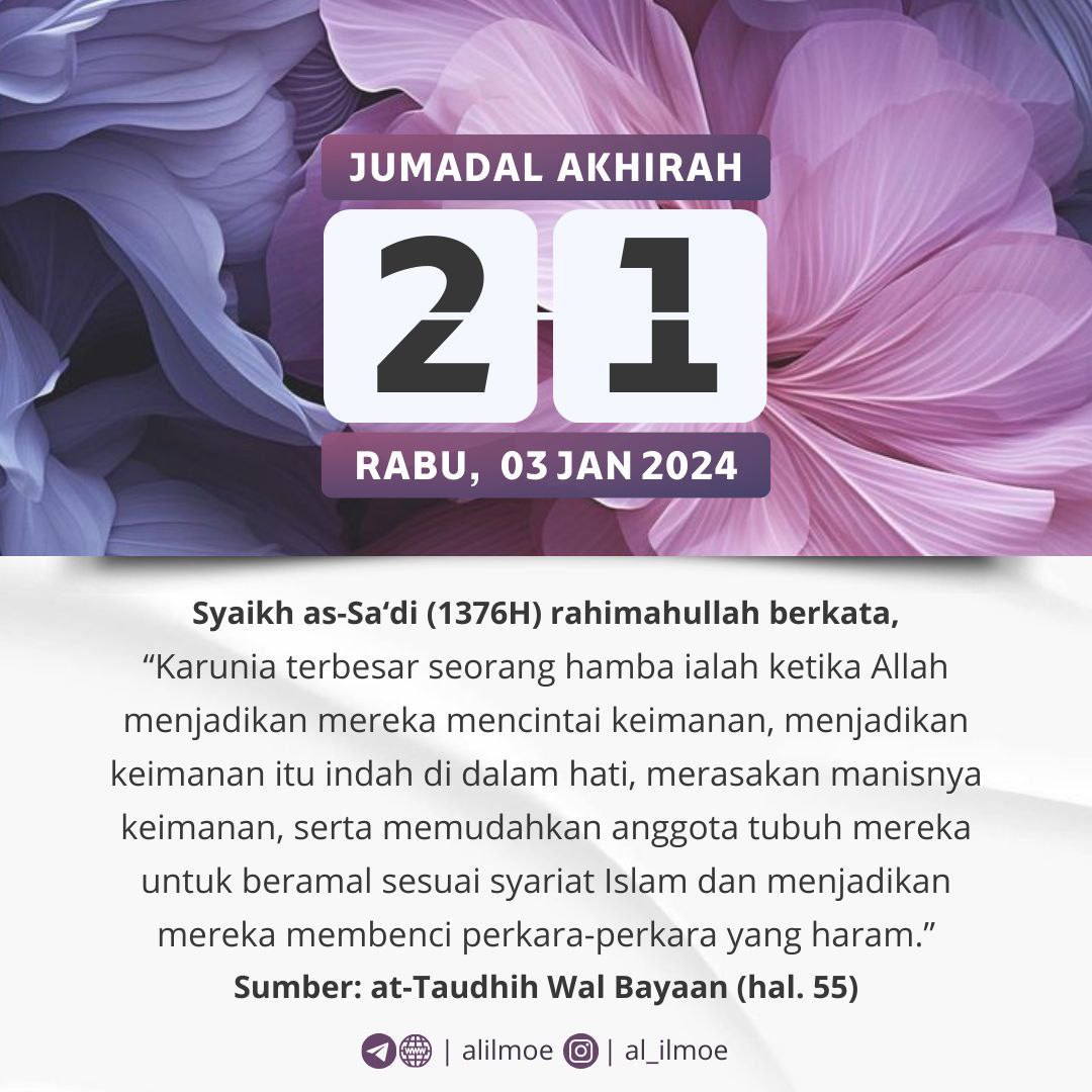 Syaikh Abdurrahman bin Nashir as-Sa‘di (1376H) rahimahullahu ta’ala berkata, أكبر المنن: أن يحبب الله الإيمان للعبد، ويزينه في قلبه، ويذيقه […]