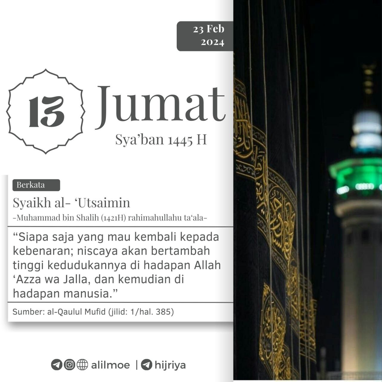KEMBALI KEPADA KEBENARAN ADALAH KEMULIAAN Syaikh Muhammad bin Shalih al-‘Utsaimin (1421H) rahimahullahu ta’ala berkata, فكل من رجـــــــع إلى الحــــق ، […]