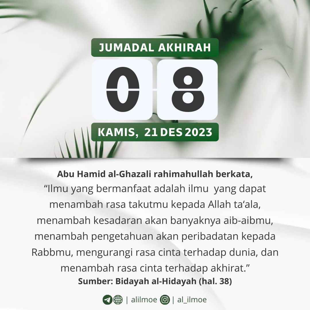 ┏•••🍃✿❁✿🍂•••━━━━━┓KAMIS, 08 JUMADAL AKHIRAH 1445H19 DESEMBER 2023┗━━━━━•••🍂✿❁✿🍃•••┛ TANDA ILMU YANG BERMANFAAT Abu Hamid al-Ghazali rahimahullah berkata, والعلم النافع هو ما […]