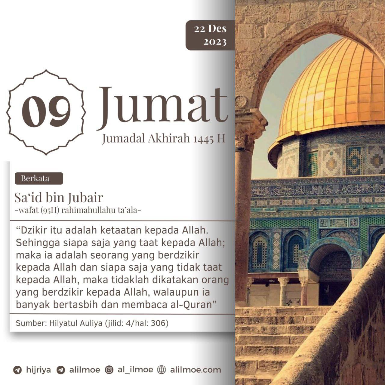 ┏•••🍃✿❁✿🍂•••━━━━━┓JUMAT, 09 JUMADAL AKHIRAH 1445H22 DESEMBER 2023┗━━━━━•••🍂✿❁✿🍃•••┛ KETAATAN KEPADA ALLAH ADALAH DZIKIR YANG PALING UTAMA Sa‘id bin Jubair -95H- rahimahullahu […]