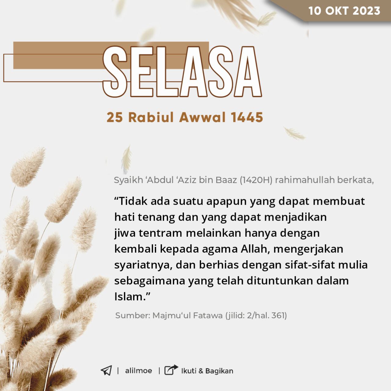 Syaikh ‘Abdul ‘Aziz bin Baaz -1420H- rahimahullahu ta’ala mengatakan: ولا شيئ يطمئن القلوب و يريح النفوس إلا الرجوع إلى الله […]