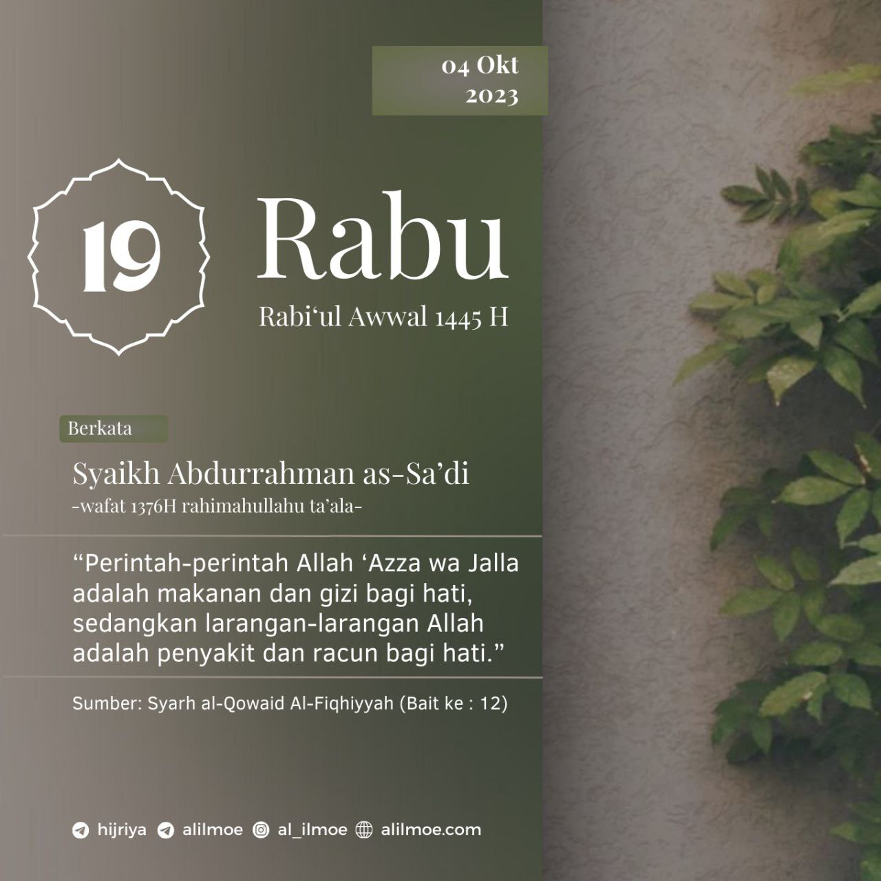 Syaikh Abdurrahman bin Nashir as-Sa‘di (1376H) rahimahullahu ta’ala berkata, فأوامر الرب قوت القلوب وغذاؤها، ونواهيه داء القلوب وسمومها “Perintah-perintah Allah […]