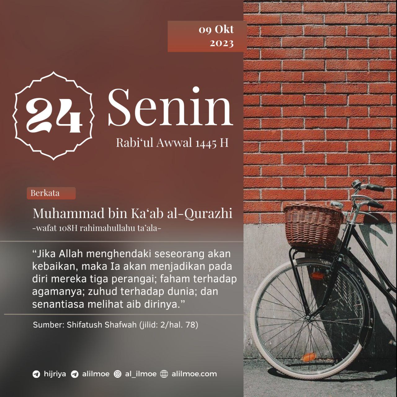 Muhammad bin Ka’ab al-Qurazhi (108H) rahimahullahu ta’ala berkata, إذا أَرَادَ ﷲ بعبدٍ خَيْرًا جَعَلَ فِيْهِ ثَلَاث خِصال: فِقْهًا في الدين، […]