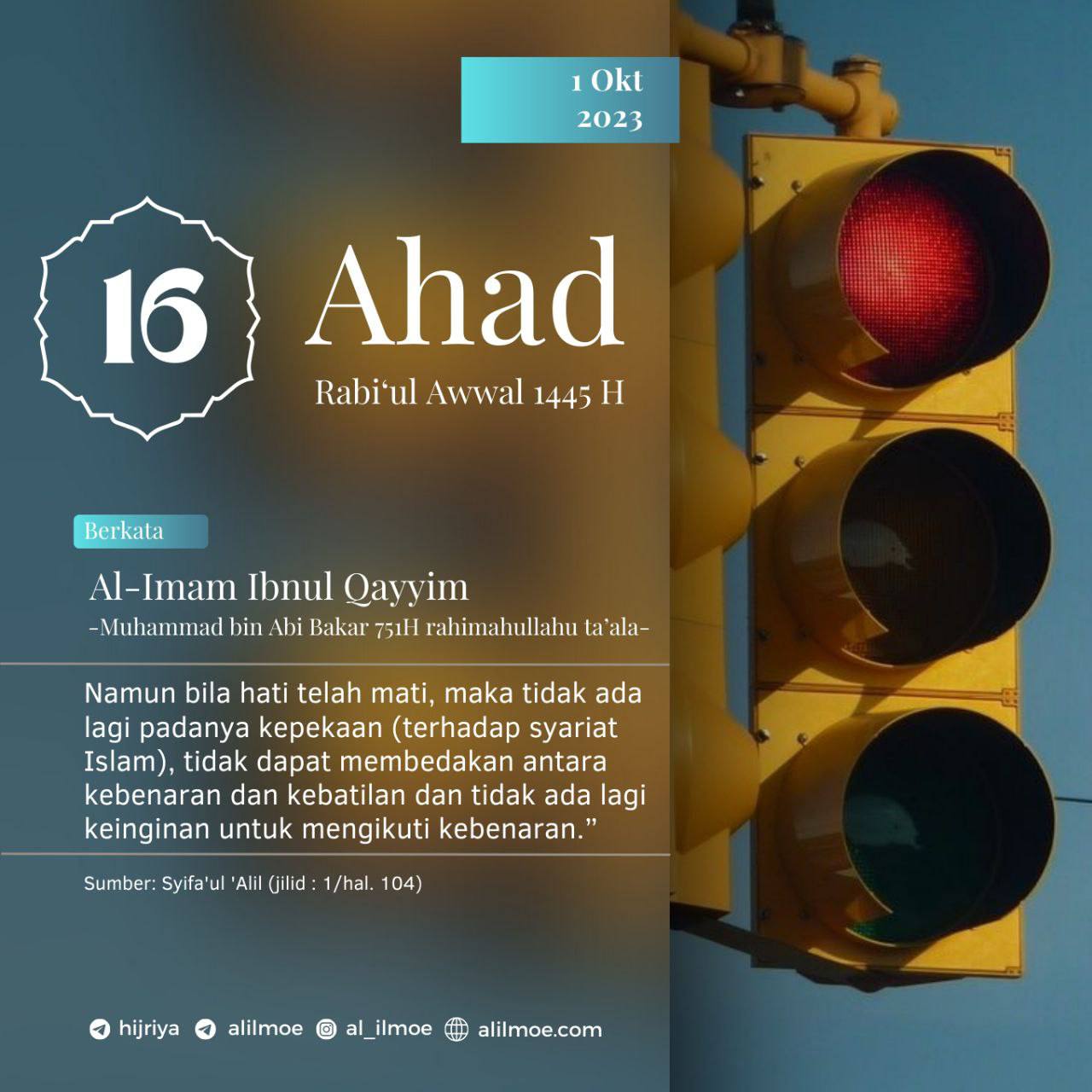 Al Imam Ibnul Qayyim -Muhammad bin Abi Bakar, wafat 751 H- rahimahullahu ta’ala mengatakan, القلب الحــــــي: هو الذي يعرف الحق […]