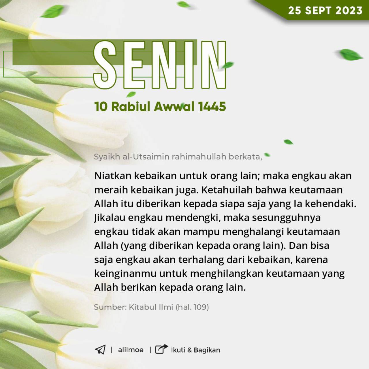 Syaikh Muhammad bin Shalih al-Utsaimin rahimahullahu ta’ala, ابغِ الخير للغير يحصل لك الخير، واعلم أنَّ فضل الله يؤتيهِ من يشاء، […]