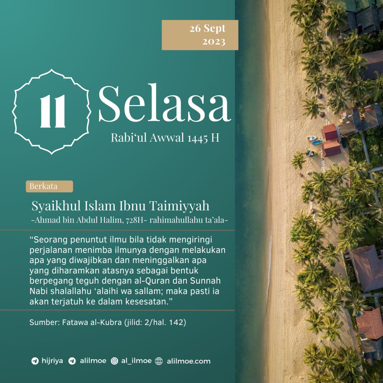 Syaikhul Islam Ibnu Taimiyyah -Ahmad bin Abdul Halim, 728H- rahimahullahu ta’ala berkata: ﻓﻄﺎﻟﺐ اﻟﻌﻠﻢ ﺇﻥ ﻟﻢ ﻳﻘﺘﺮﻥ ﺑﻄﻠﺒﻪ ﻓﻌﻞ ﻣﺎ […]