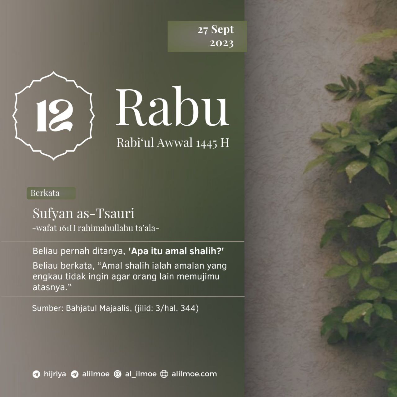 Al-Imam Sufyan bin Sa’id as-Tsauri -wafat 161H- rahimahullahu ta’ala, pernah ditanyakan, ‘Apa itu amal shalih?’ Beliau menjawab, ما لا تحبُ […]