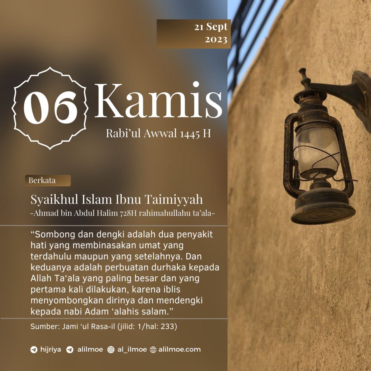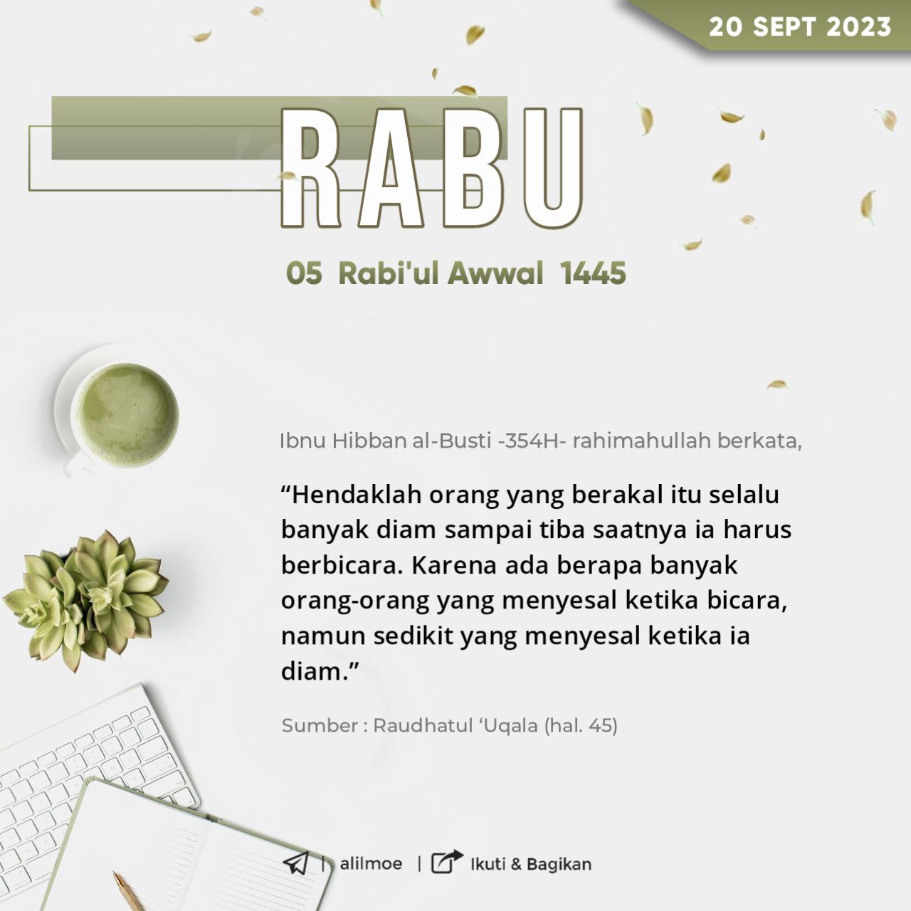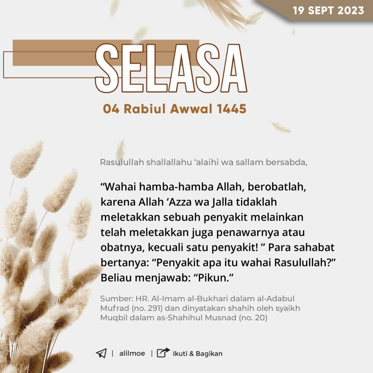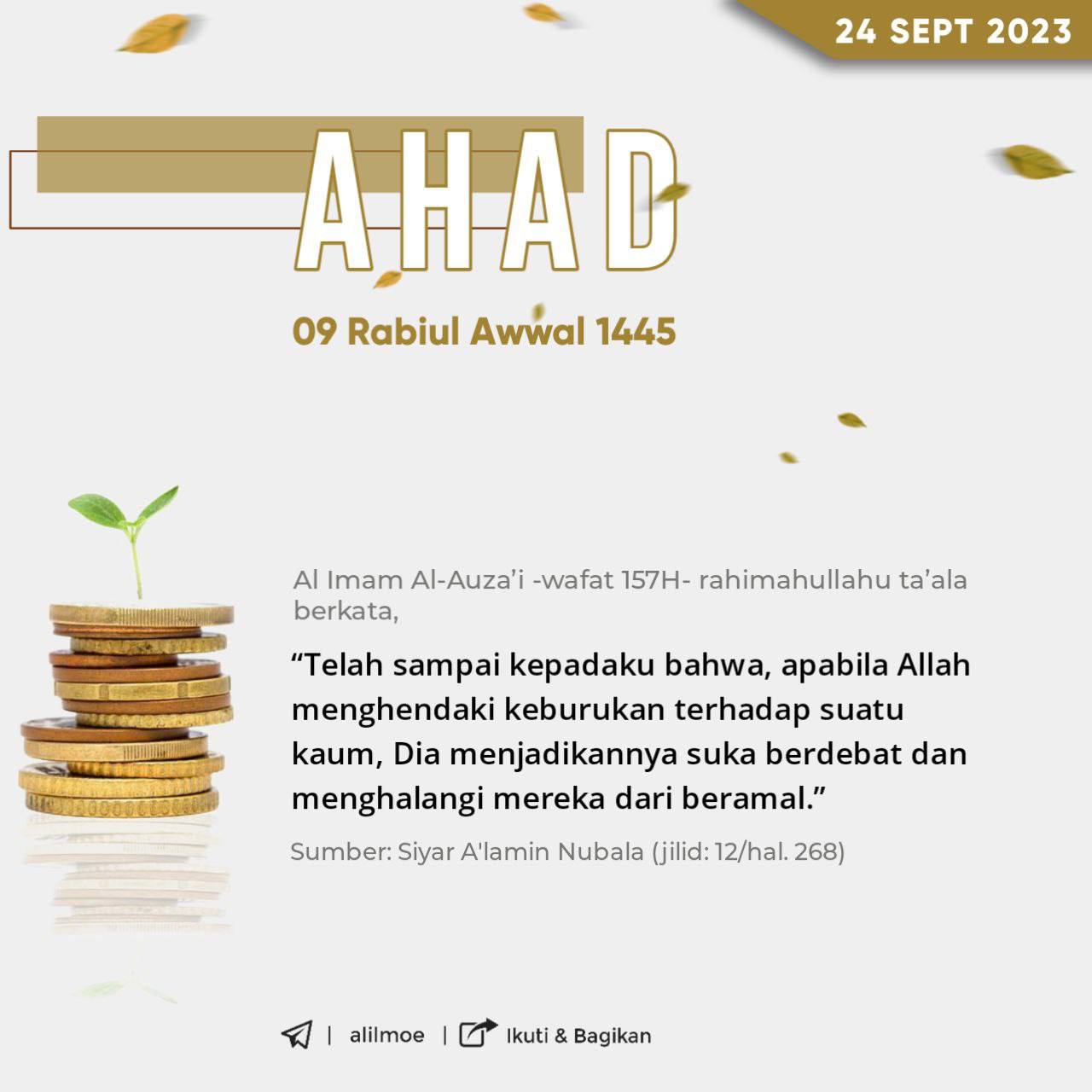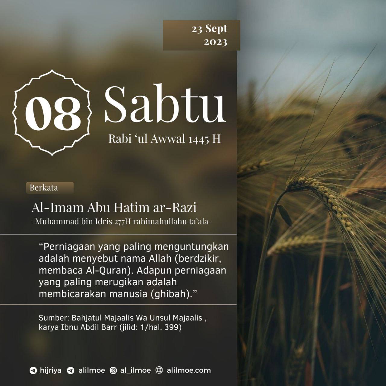 Abu Hatim ar-Razi (Muhammad bin Idris, 277H) rahimahullahu ta’ala berkata, أربَحُ التِّجارةِ ذِكرُ اللهِ، وأخسَرُ التِّجارةِ ذِكرُ النَّاسِ “Perniagaan yang […]