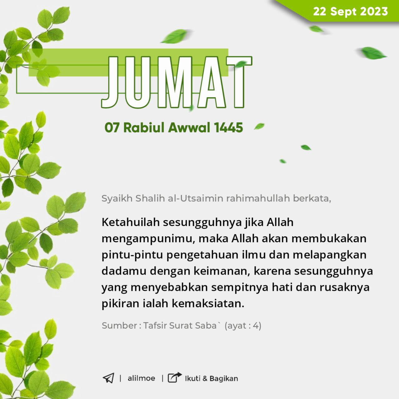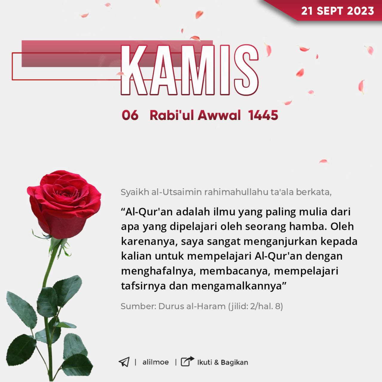 Syaikh Muhammad bin Shalih al-‘Utsaimin -wafat 2000M (1421H)- rahimahullahu ta’ala berkata, القُرآن هو أشرف علم يتعلمه الإنسان، ولذا أحثكم حثًا […]