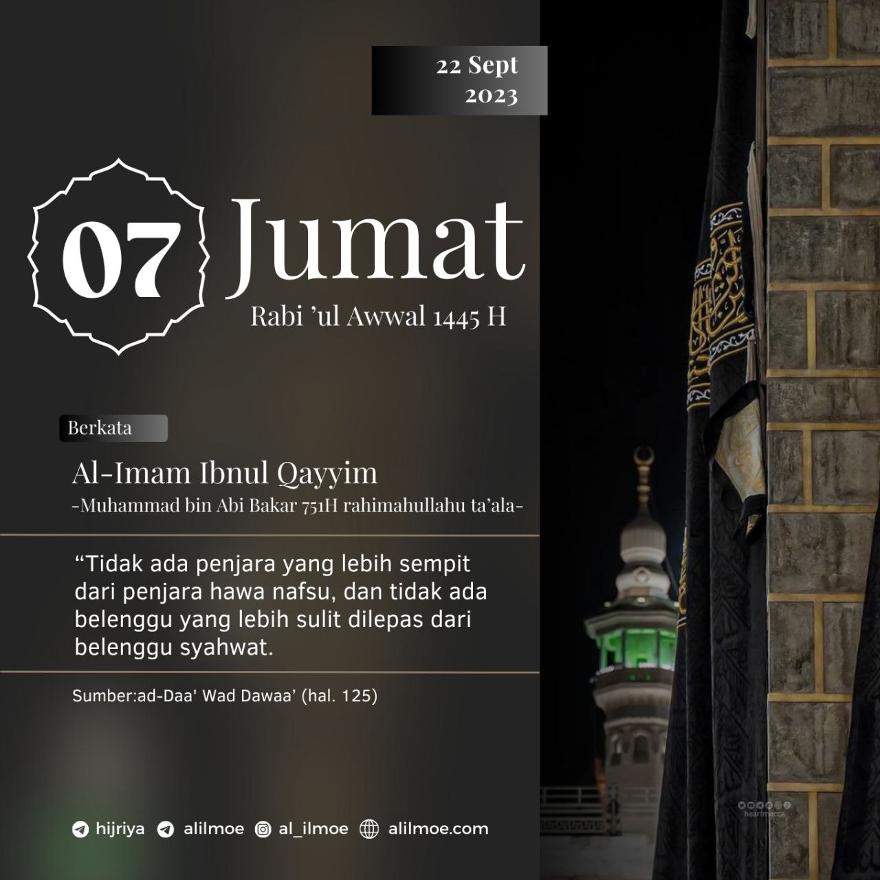 Al Imam Ibnul Qayyim -Muhammad bin Abi Bakar, wafat 751 H- rahimahullahu ta’ala mengatakan, ولا سجن أضيق من سجن الهوى، […]