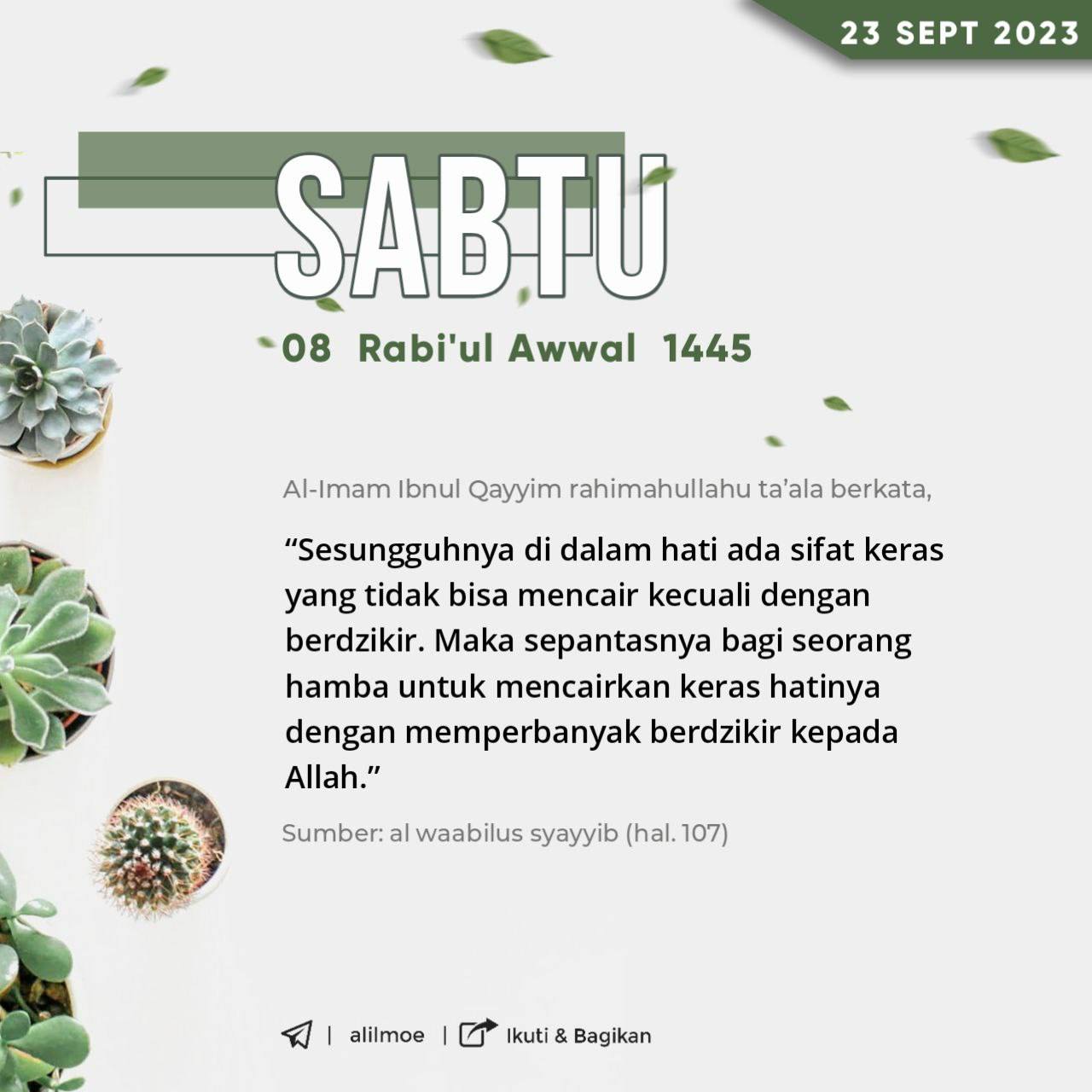 Al Imam Ibnul Qayyim -nama beliau Muhammad bin Abi Bakar wafat 751H-rahimahullahu ta’ala berkata, إن في القلب قسوة لا يذيبها […]