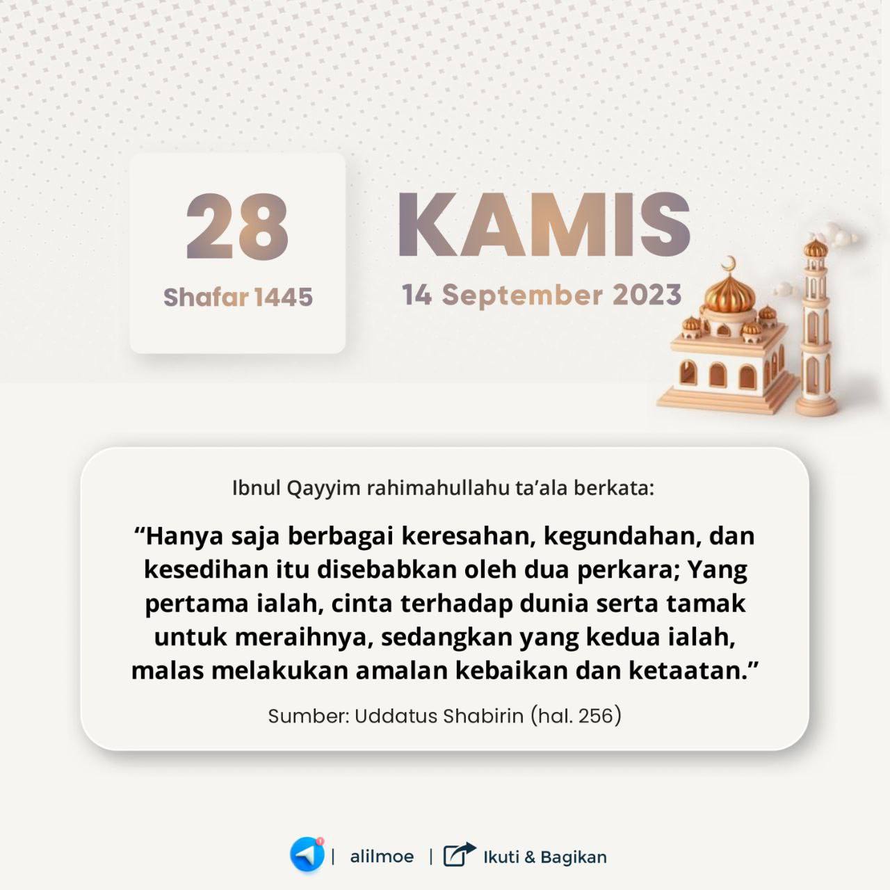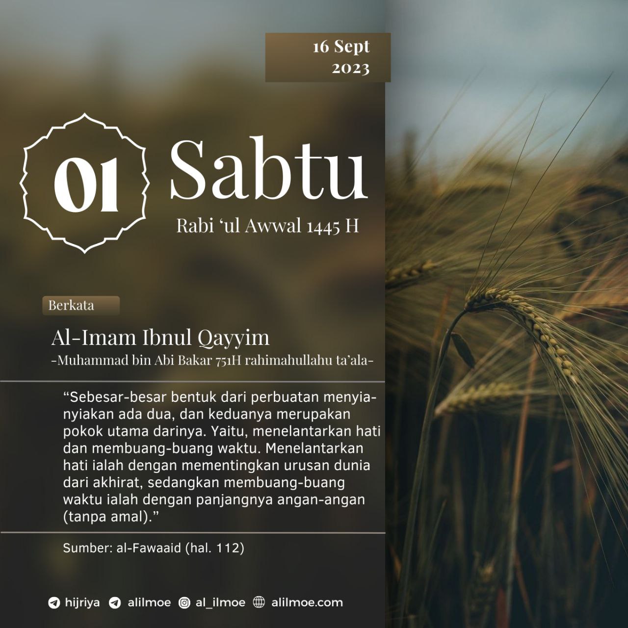 Al Imam Ibnul Qayyim -Muhammad bin Abi Bakar, wafat 751 H- rahimahullahu ta’ala mengatakan, :أعظم الإضاعات إضاعتان، هما أصل كل […]