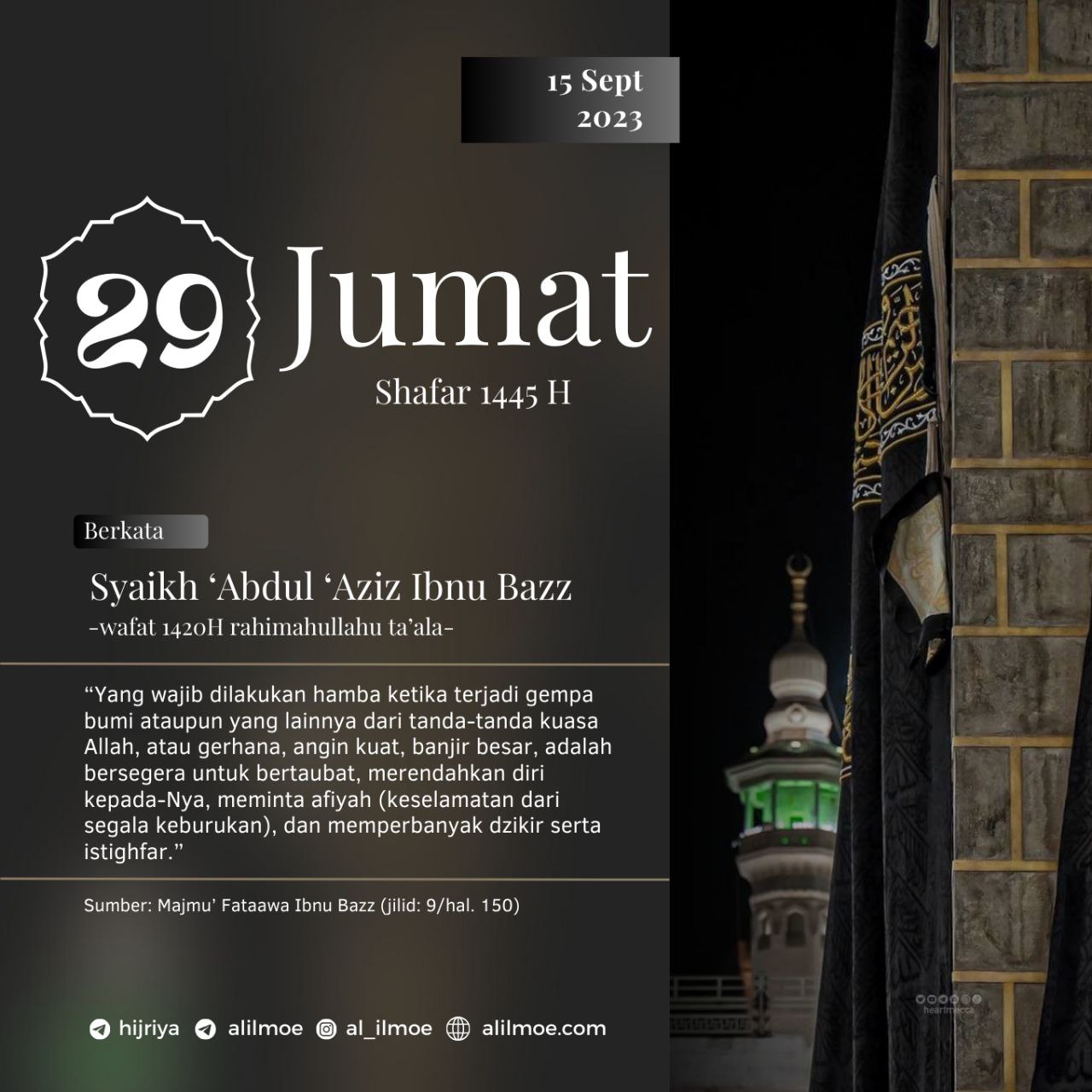 Syaikh Abdul Aziz bin Bazz (1420H) rahimahullahu ta’ala berkata, الواجب عند الزلازل وغيرها من الآيات والكسوف والرياح الشديدة والفياضانات البدار […]