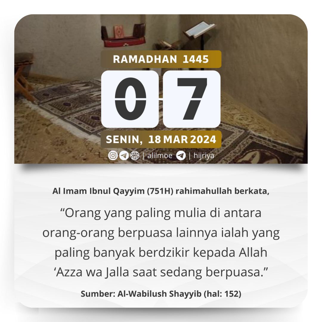 ORANG BERPUASA YANG PALING MULIA Al Imam Ibnul Qayyim -Muhammad bin Abu Bakar, 751H- rahimahullahu ta’ala berkata, أنَّ أفضلَ أهلِ […]