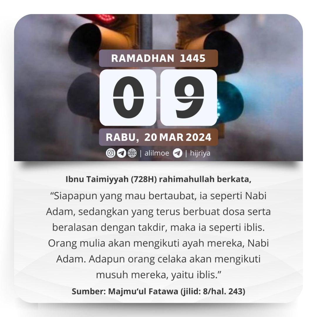 Syaikhul Islam Ibnu Taimiyyah -Ahmad bin Abdul Halim, 728H- rahimahullahu ta’ala berkata: ﻓَﺈﻥَّ ﺁﺩَﻡَ – ﻋَﻠَﻴﻪِ اﻟﺴَّﻼﻡُ – ﻟَﻤَّﺎ ﺃَﺫﻧﺐَ […]